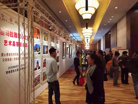 當天晚上8點,來自當?shù)卣块T、行業(yè)組織、企業(yè)代表、媒體單位和其他社會各界愛心人士近500人齊聚一堂,現(xiàn)場座無虛席。在一段震撼人心的“尼泊爾地震”視頻后,活動正式拉開序幕。拍賣從當?shù)財z影家的兩幅作品開始,隨后的藏香、藏式珠寶、唐卡、油畫等拍品讓現(xiàn)場的氣氛持續(xù)升溫,現(xiàn)場嘉賓被精彩紛呈的藝術品吸引,更為藝術家和收藏家們的慷慨捐贈所感染,紛紛舉手競拍,爭相獻出自己的愛心。在不到一個半小時的時間里,所有近20件拍品全部成交,共募集善款282800元。