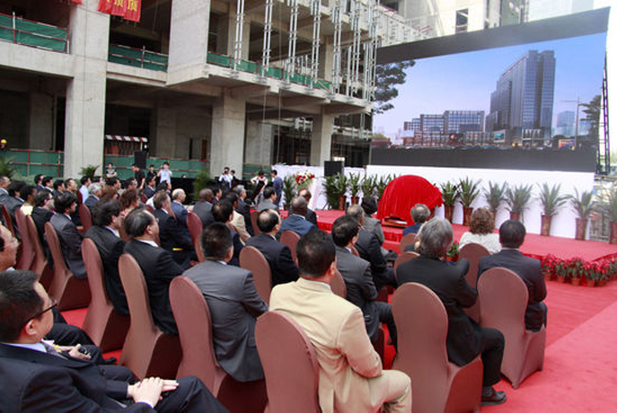 建設部、外交部、北京市建委、北京外交人員服務局等領導、阿根廷駐華大使、集團董事局主席李文健啟動結構封頂儀式