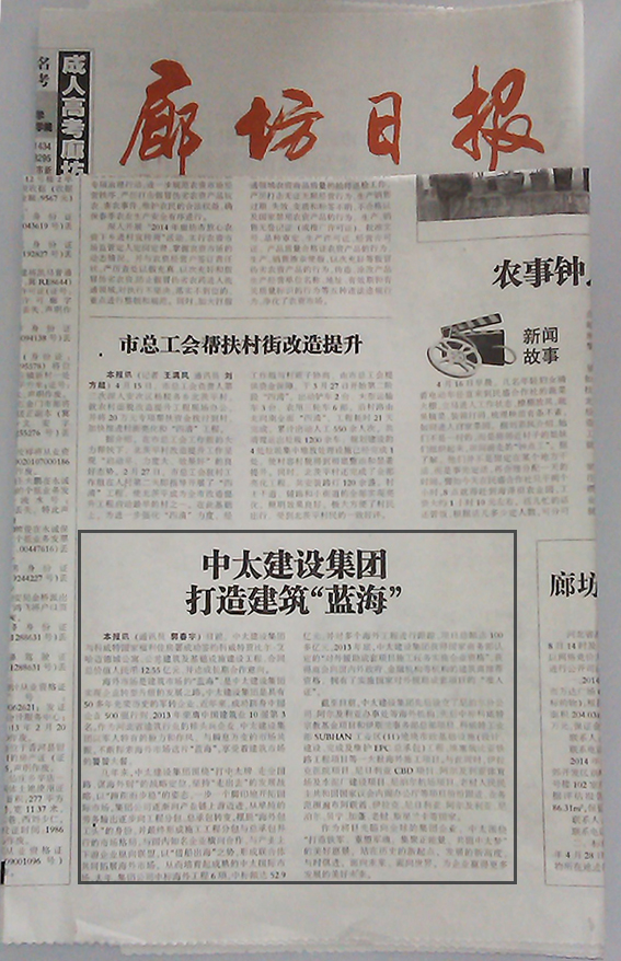 廊坊日?qǐng)?bào)報(bào)道了中太建設(shè)集團(tuán)打造建筑“藍(lán)!