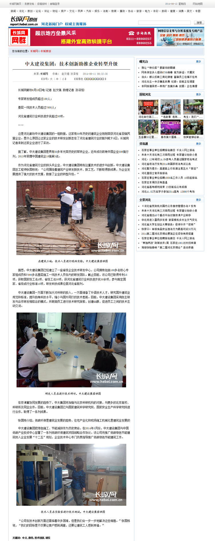 長城網、中國網、鳳凰網分別報道了中太建設集團:技術創新助推企業轉型升級