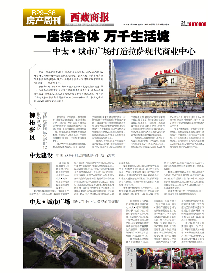 目前西藏規模最大、檔次最高、業態最全的城市綜合體項目——中太·城市廣場是由中太建設集團投資開發建設。