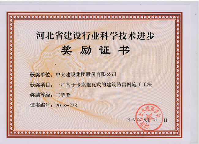 2018年河北省建設(shè)行業(yè)科學(xué)技術(shù)進(jìn)步獎(jiǎng)勵(lì)證書(shū)匯總