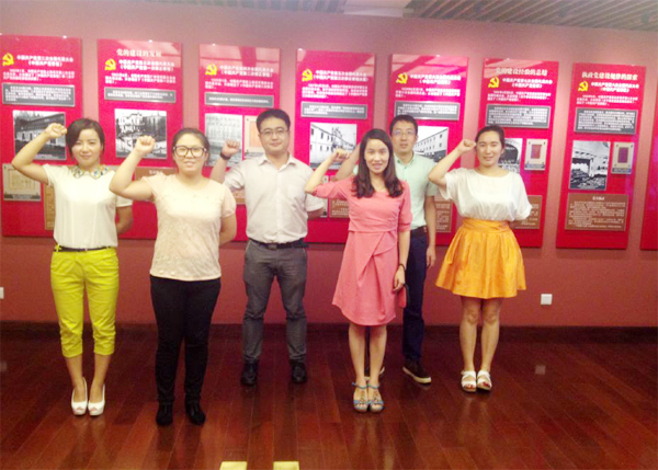 推開那扇厚重的石庫門老房子的房門,仿佛回到了過去那個戰火硝煙的年代。在講解員的認真解說下,員工們共同重溫了中國共產黨的發展歷程,領略了建黨的艱辛與危險,更加體會到如今的勝利成果是有多么來之不易。滿眼的珍貴影像、圖文和實物資料,令員工們大開眼界并不由得心潮澎湃。面對那份業已發黃但卻對于中國革命具有重要意義的《中國共產黨宣言》,員工們駐足之前,領會著革命的艱辛,感受著革命黨人誓要建立偉大新中國的澎湃熱血和堅定不移的信念。一行人不約而同地在榮譽室前莊嚴宣誓:“珍惜當下,努力奮斗!”